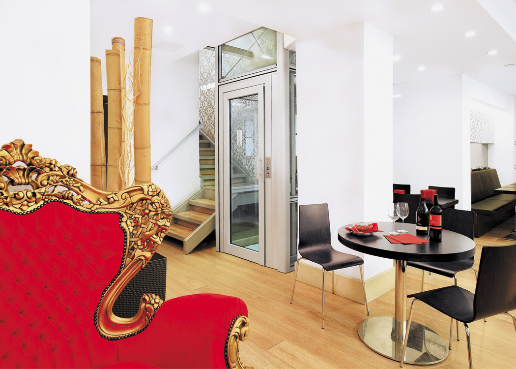 DomusLift offre une flexibilité d’application, capacité de service et contribution esthétique, en s’adaptant aux situations les plus complexes et à n’importe quel environnement architectural, même avec des liens historiques ou cages d’escalier très étroites et d’espaces réduits.